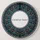 Corinthian Guard Disk, un dibujo griego de figuras negras hecho en multimedia desde boceto hasta acabado digital, sobre fondo negro con borde de punta blanca en la parte superior e inferior y brillo azul del movimiento y sosteniendo sus lanzas hacia arriba mientras marchan victoriosamente.