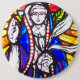 Chapa Redonda De 15 Cm Diseño de vidrio manchado con figura religiosa.