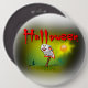 Esta imagen dice Halloween en rojo. El fantasma tiene una sonrisa en su cara y está flotando sobre el paisaje con el sol en el fondo. La bruja está volando sobre su palo de escoba. Estos botones vienen en un surtido de cuadrados y redondos con el redondeo que viene en una variedad de formas y tamaños.
