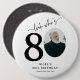 Celebra ochenta años de estilo con nuestro botón "Look Who's 80 Milestone" Con una foto de la persona de cumpleaños como '0' en su edad, este botón de personalizable es una manera única de hacerlos sentir especiales. Nuestra elegante caligrafía y detalles personalizados, incluyendo su nombre, edad, ubicación y año, hacen de este el regalo o el favor de fiesta para todos sus huéspedes. ¡Saludos a treinta años de recuerdos e hitos!
