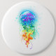 Grandes medusas de azulejo brillantes, de dibujos artísticos, con largos tentáculos en blanco, pintadas con fondo multicolor de acuarela. Mariscas arcoiris.