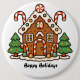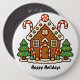 Unique, fun holiday Gingerbread house button to celebrate Christmas time is near. Great to use for seasonal get-together with friends, co-workers or family members, with "Happy Holidays" on it, or customize it with your own greetings.