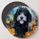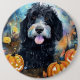 Chapa Redonda De 15 Cm Halloween Bernedoodle Con Calabazas Asustadas