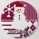 ¡Este botón adorable es la de manera perfecta de identificar medias el mañana de navidad! La personalización permite que usted añada los someones nombre, usted puede entonces fijar este botón en una media para poder reconocer fácilmente que la media pertenece a qué miembro de la familia. Este fondo púrpura del ciruelo de las características del diseño con los copos de nieve blancos, las rayas y el argyle diseñan. Hay un muñeco de nieve blanco que lleva un gorra rojo de Papá Noel y él viene completo con una nariz de la zanahoria y los ojos y boca del carbón de leña. Debajo de este navidad el muñeco de nieve es texto en el frente gris y negro donde usted puede añadir un nombre para personalizar este botón. El navidad de este muñeco de nieve que almacena el botón conocido de la etiqueta hace un gran recuerdo que se utilizará cada año como tradición del día de fiesta.