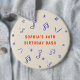 Divertidos y caprichosos botones de fiesta de cumpleaños número 40 dibujados a mano con ilustraciones juguetonas de notas musicales y estrellas. ¡La adición perfecta para una noche de piano celebratoria!