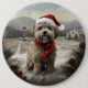 Chapa Redonda De 15 Cm Perro Yorkipoo en Navidades de nieve