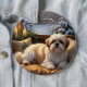 Chapa Redonda De 15 Cm Shih Tzu con vacaciones de Navidades alumbrados