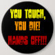 Chapa Redonda De 15 Cm ¡Usted le toca, muere! ¡, Manos apagado!!!