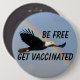 El botón de declaración política personalizada Be Free Get Vaccinated Flying American Bald Eagle presenta un águila calva estadounidense voladora. Encima del águila el texto dice: "Sé libre". Debajo del águila, el texto dice: "Vacunen". Esta declaración política a favor de la vacunación es totalmente personalizable. Puede cambiar las imágenes y el texto y agregar el propio. Busque más camisetas, tarjetas y regalos en nuestra tienda en zazzle.com/VicesAndVerses.