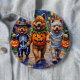 Adorables Chow Chows vestidos con juguetones disfraces de Halloween llevan baldes de calabaza mientras truco o truco bajo el cielo iluminado por la luna. Este diseño festivo resalta el esponjoso abrigo de la raza, el estilo de león y la personalidad digna, capturando a la perfección la atmósfera espeluznante y alegre de la noche de Halloween. Una deliciosa celebración para los amantes del perro y los fans de Halloween por igual.