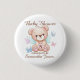 Celebra a la futura madre con un lindo oso y mariposas botón de ducha de bebé personalizado. Incluye el nombre del evento especial junto con el nombre de la futura madre y su monograma. Utilice la plantilla para personalizar.