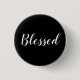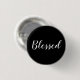 Bendito guión personalizado blanco y negro caligrafía lindo botón pin. Diseño elegante y moderno. Personalizable.