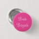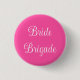 Botón de pin de moda divertida casual accesorio de declaración impreso con fondo de color rosa caliente y Brigada de la Novia en tipografía de letra de texto de color blanco diseño por TheFabricSeal tienda de impresión bajo demanda en Zazzle.com #ZazzleMade https://www.zazzle.com/store/thefabricseal TheFabricSeal Original.