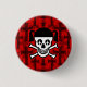 Este botón gótico presenta un cráneo Chica de Gótico y huesos cruzados con fondo de cruz gótica rojo y negro.