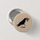 Botón personalizado, con una adorable foto capturada de un cuervo con un papel desmenuzado en su pico.