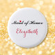 Hermoso, elegante, divertido, genial, personalizado, elegante botón redondo de pinback para la dama de honor para la despedida de soltera, fiesta de soltera, boda.