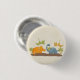 Botón con un diseño lindo con 4 dinosaurios. 2 están volando y 2 están en el suelo. Creado con acuarelas.
