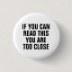 "Si puedes leer esto, estás muy cerca" del diseño temático de la distanciamiento social.