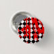 Este distintivo botón Emo presenta un diseño de arte gráfico en blanco, negro y rojo.