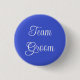 Botón Pin divertido accesorio de moda con estampado de fondo de color azul real y texto "Team Groom" en tipografía de letra de color blanco diseñado por TheFabricSeal tienda de impresión bajo demanda en Zazzle.com #ZazzleMade https://www.zazzle.com/store/thefabricseal TheFabricSeal©️Original.