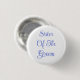 Botón de pin de moda divertida casual accesorio de declaración impreso con fondo de color blanco y Hermana del novio en texto de tipografía de letra de color azul real diseño de TheFabricSeal tienda de impresión bajo demanda en Zazzle.com #ZazzleMade https://www.zazzle.com/store/thefabricseal TheFabricSeal Original.