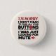 Divertido y lindo dicho gracioso en la moderna tipografía negra y roja. El texto del botón dice "Lo siento, no quise presionar todo el botón. Estaba buscando silencio" Perfecto para cualquier época del año y hace un gran regalo para alguien con buen sentido del humor