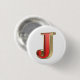 Chapa Redonda De 2,5 Cm Letra roja de vidrio J