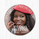 Botón Memorial fotográfico personalizado, un diseño sencillo, moda y moderno con sofisticado tipo de letra serif, nombre personalizado, fecha y fotos, para un aspecto elegante y sofisticado. Sin orden mínima.