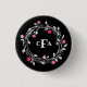 Chapa Redonda De 2,5 Cm Monograma personalizado: flor blanca y negra