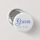 Botón Pin accesorio de moda divertido y casual con fondo de color blanco e impresión de texto en color azul real con tipografía y diseño de letras por TheFabricSeal tienda de impresión bajo demanda en Zazzle.com #ZazzleMade https://www.zazzle.com/store/thefabricseal TheFabricSeal Original.