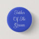 Botón Pin divertido accesorio de moda casual con fondo de color azul real y texto "Father Of The Groom" en tipografía de letras de color blanco diseñado por TheFabricSeal tienda de impresión bajo demanda en Zazzle.com #ZazzleMade https://www.zazzle.com/store/thefabricseal TheFabricSeal Original.