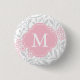 Chapa Redonda De 2,5 Cm Patrón monogramado de Damasco floral rosa gris