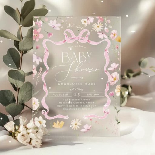 Pink Bow Ribbon Frame Floral baby showerDiseñado por Julia J