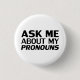 "Pregúntame a mis Pronouns" botón blanco negro del orgullo Lgbtq, alfiler