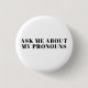 "Pregúntame a mis Pronouns" botón blanco negro del orgullo Lgbtq, alfiler