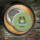Un botón verde con un ilustracion de una rana linda en su estanque y el texto de personalizable debajo! ¡Añade tu ropa o accesorios para darle un toque divertido!