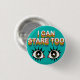 Un diseño semipsicodélico para ahuyentar a las personas que te han confundido con un espectáculo de sideshow Descripción de la imagen: un alfiler turquesa con la leyenda "Yo también puedo mirar", con dos ojos dibujados debajo.