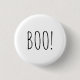 Boo blanco y negro minimalista simple y espeluznante tipografía escrita a mano divertido lindo botón de pin de Halloween. Texto negro sobre fondo blanco. Compruebe el resto de la colección para coordinar y hacer coincidir artículos y suministros y decoraciones adicionales de la fiesta de Halloween