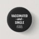 Personalizado Funny Vacunado y soltero, estoy listo para mezclar el botón negro Covid-19 mujeres y hombres. Muestra tu opción de seguridad frente a Coronavirus con este diseño moderno y fresco de plantilla de tipografía completamente personalizable, sans-serif básico y de moda de guiones y un aspecto profesional urbano casual. Una idea de regalo perfecta para los amigos que buscan el amor, quieren tomar una línea, y atraer abrazos y besos de una manera segura y libre de copos, incluso si han sido vacunados con Pfizer o Moderna. Unisex, disponible en grandes, pequeños, grandes, medianos tamaños. Sin orden mínima.