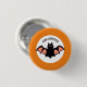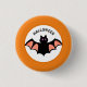 Tocante murciélago de Halloween sobre botón naranja y blanco. El texto se puede personalizar.