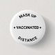 Vacunado, Máscara arriba, Distancia, con botón de texto personalizado, texto de personalizable de pin, fechas. También se pueden eliminar en blanco y negro, disponibles en muchos colores