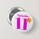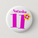 Celebra un cumpleaños 11 especial con este divertido botón/botón gráfico de flores rosas, amarillas y blancas. Personaliza esta insignia de edad tu nombre de chica de cumpleaños. Diseñado por www.mylittleeden.com
