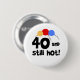 Globos de los colores primarios y texto negro que lee "40 y aún caliente!" ¡en las 40.as camisetas del cumpleaños, las tazas, los botones, las tarjetas, y el otro engranaje del cumpleaños!