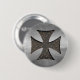 Un rejilla-hierro del falso-final en cruz maltesa inoxidable cepillada. Hierro no real, acero no real, arte. Camisetas, pegatinas, tazas, swag del regalo de la novedad.