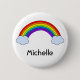 Un arco iris emerge de las nubes en este botón con un nombre abajo en letras negras. Personalice con el su propio nombre o el otro texto. Personalizar para cambiar estilo y color de fuente.