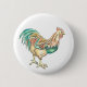 Botón de insignia con una colorida ilustración de gallo inspirada en el vintage. Derechos de autor de la obra: Dominic A. White. Todos los derechos reservados.