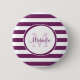 Un botón roscopio de rayas de rugby violeta y blanca de moda. Personalice este patrón de vestimenta añadiendo su nombre y monogramado inicial. Este modelo de monograma es parte de la colección de colores de verano de las bandas moradas magenta de elementos personales esenciales.