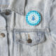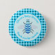 Este botón muestra una imagen gráfica de una linda abeja de bebé azul con piernas negras y ojos turbios. Tiene un cuerpo azul pálido y difuso con rayas azules brillantes y una bonita antena azul en su nublada cabeza. Sus delicadas alitas tienen un patrón azul pálido en el suelo. El diseño también incluye girasoles azules bonitos. El texto es personalizable para que puedas incluir el nombre de la orgullosa Madre a Ser.