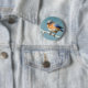 Botón redondo de la parte posterior del perno con un diseño digital de un bluebird del este en una rama gris clara.