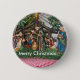 El navidad metalizado redondo abotona con la foto de la natividad y las palabras: Felices Navidad